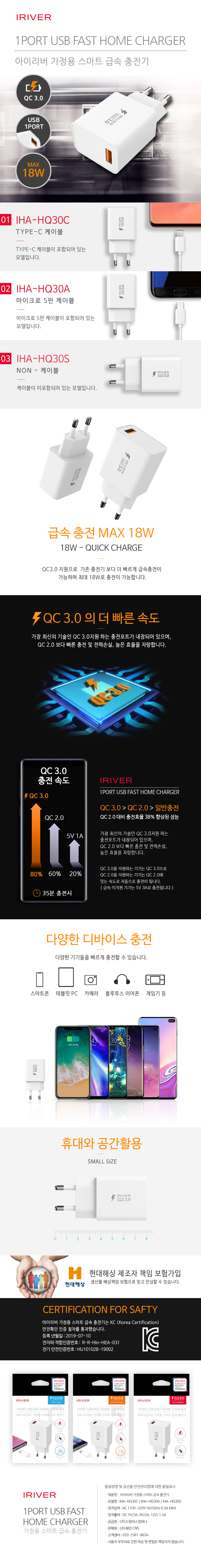 IHA-HQ30, QC3.0, 가정용 분리형 급속충전기